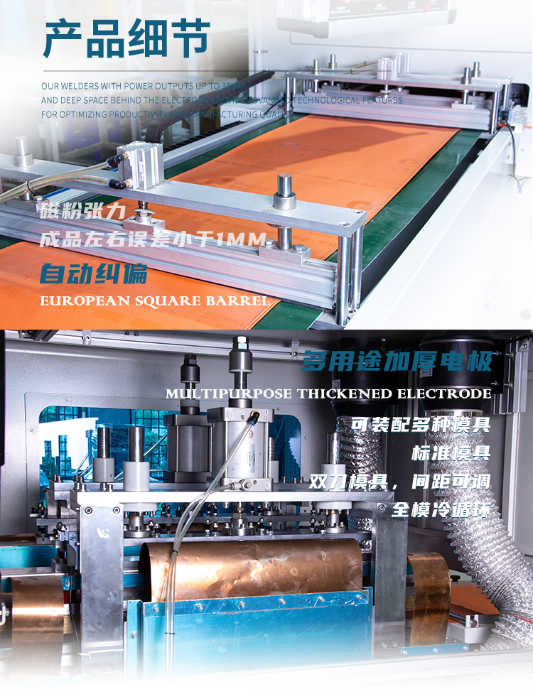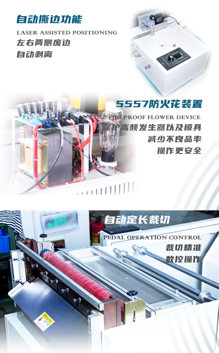 產(chǎn)量好。連續(xù)送料熔接,定位精準(zhǔn)。也適用用大面積產(chǎn)品的加工,熔接,如PVC水床,漂流筏,兒童泳池等。