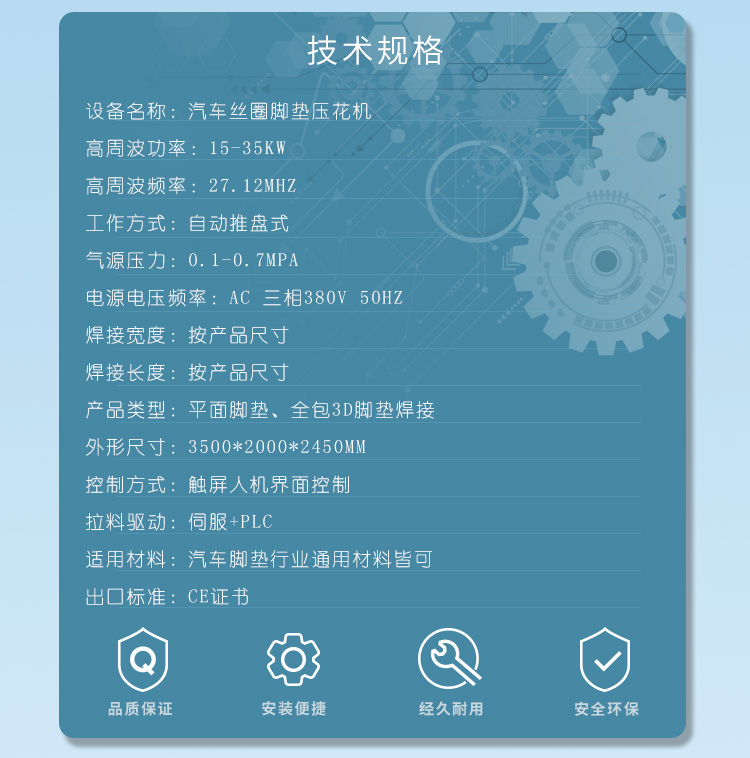 三,日力高周波汽車地毯焊接機(jī) 技術(shù)規(guī)格: