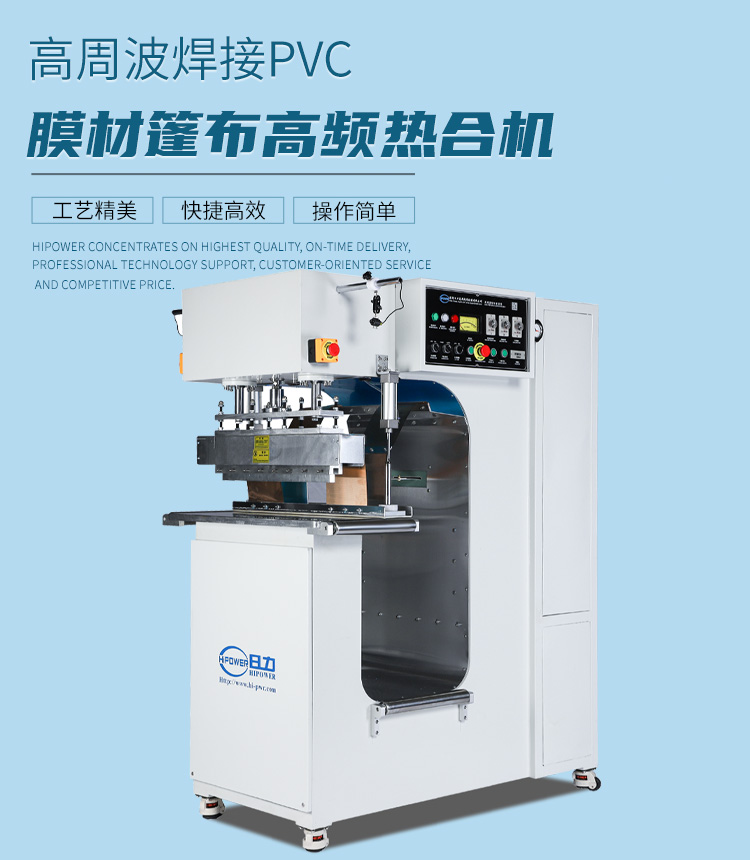 高周波功率大小的機(jī)器,每次焊接材料的長(zhǎng)度彎度及寬度,均可以通過(guò)改變高周波模具的尺寸長(zhǎng)短寬度,實(shí)現(xiàn)膜結(jié)構(gòu)或帆布