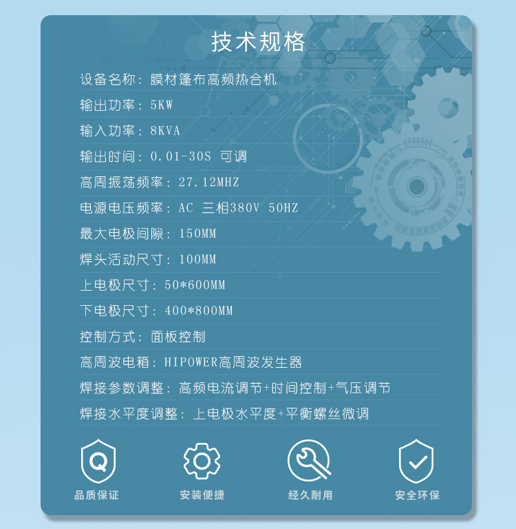 三, 高周波膜結(jié)構(gòu)焊接機(jī)\\膜結(jié)構(gòu)熱合機(jī)的技術(shù)規(guī)格;