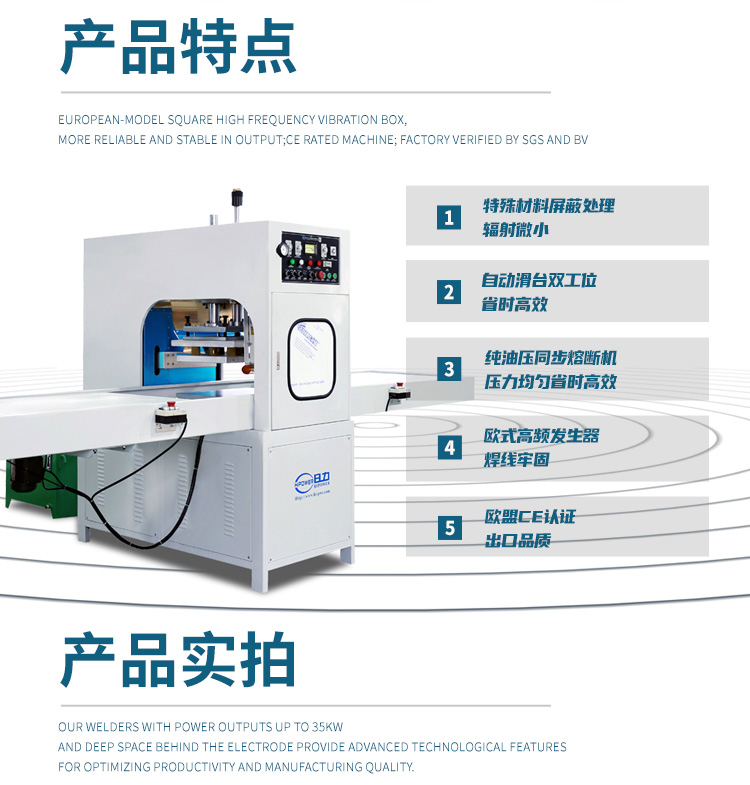 用途: 主要用于需要高周波熔接同時又必須同步裁斷的產(chǎn)品加工,高周波機的工作原理是利用高周波先熔接再通機器配有的壓力裝置同