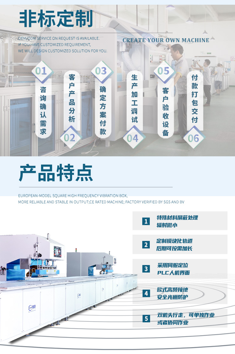★本高周波熔接機采用低損耗的歐洲制式同軸高頻諧振器,高周波輸出電力強大,能使制品熔接,大大提高了生產產量。機器設有高周波頻率穩(wěn)定器,以及高周波屏蔽裝置。將高頻干擾降低,避免電波干擾。同時可以避免由不當操作所引起的頻率漂移,使電極和物料損壞減低同時警告燈亦發(fā)亮示警。