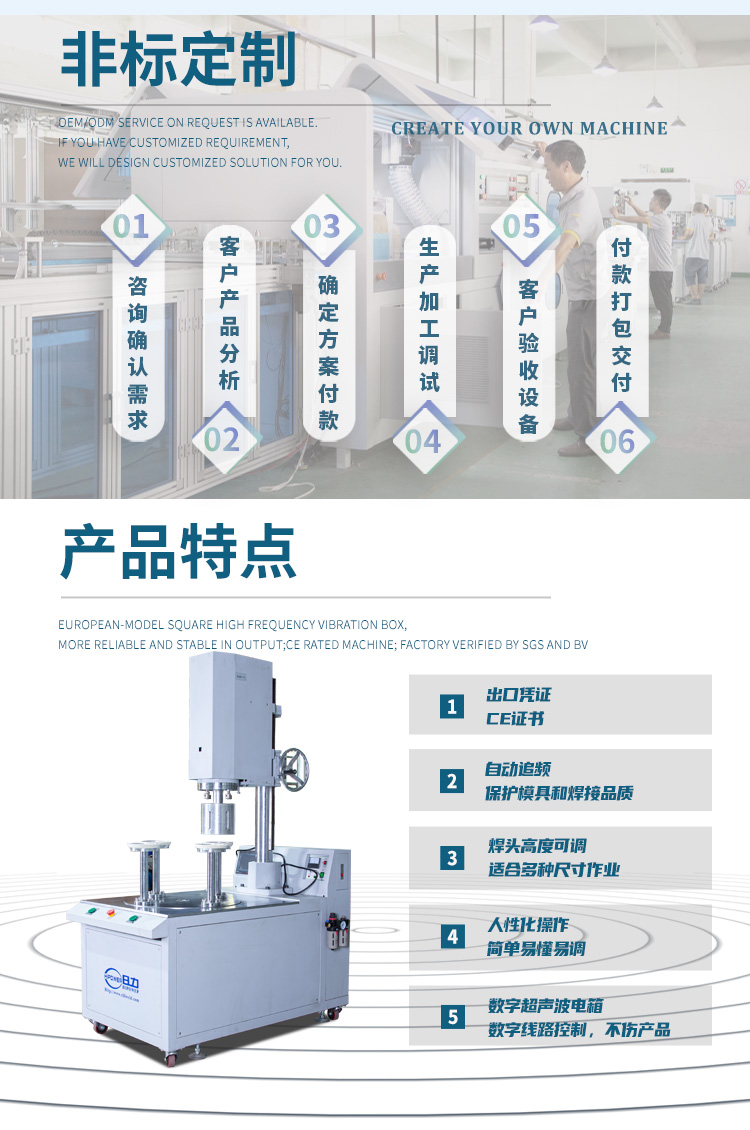 圓筒底蓋焊接機用途: 主要用來焊接PVC、APET、PETG等圓筒底蓋;日力公司供應(yīng)的高周波圓筒底蓋焊接機、超聲波圓筒底蓋焊接機的生產(chǎn)廠家。 日力高周波圓筒封底機特點: ※自動轉(zhuǎn)盤式高周波圓筒封底機,適用于PVC透明圓筒底蓋熔接、APET透明圓筒底蓋焊接、PETG圓筒蓋底封囗、塑膠圓筒底蓋封邊、紙質(zhì)圓筒蓋底封囗等。 ※四工位自動轉(zhuǎn)盤循環(huán)驅(qū)動,精密分割器定位,采用高周波原理粘合,效果牢固美觀且無刮痕。能滿足不同直徑、高度、材料厚度的圓筒底蓋粘合,花紋美觀也可選擇平壓無紋路,機器操作簡單高效, 可與日力公司HY-2030全自動圓筒卷邊機對接使用,實現(xiàn)流水線生產(chǎn)。 ※機器除了專業(yè)粘合PVC、APET、PETG材料的圓筒底蓋外,還可以做其它用途的高周波焊接機、高周波機熔接機,可一機多用。 日力高周波圓筒封底機能滿足不同直徑(20-200mm)、高度(10-400mm)、材料厚度(0.15-0.5mm)的塑料圓筒底蓋粘合,花紋美觀;高周波圓筒封底機操作簡單高效(2-5秒/個可調(diào)),可與我司HY-2030全自動圓筒卷邊機對接使用,實現(xiàn)流水線生產(chǎn),實現(xiàn)圓筒卷邊,封底一次成型。 日力高周波圓筒底蓋焊接機適用行業(yè): 適用于糖果包裝、禮品包裝、玩具包裝、文具包裝、傘具包裝、漁具包裝、羽毛球包裝、署片包裝、署片類休閑食品包裝等產(chǎn)品的理想包裝容器。