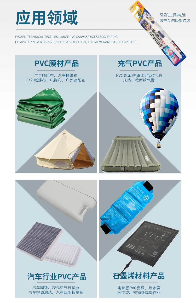 | 適用范圍: | 焊接PVC,或者PVC為基礎(chǔ)的電影幕布,投影布,3D幕布等產(chǎn)品的焊接作業(yè)。 |