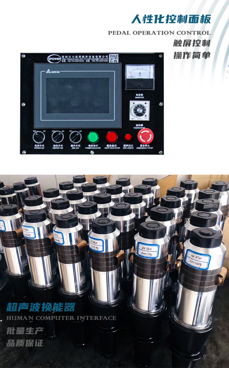 8. 超聲波發(fā)生器電箱: 美式數(shù)字線路,微電腦屏幕,人性化操作,簡單易懂易調(diào),精確的時(shí)間控制,可1ms遞增減,無時(shí)間差;