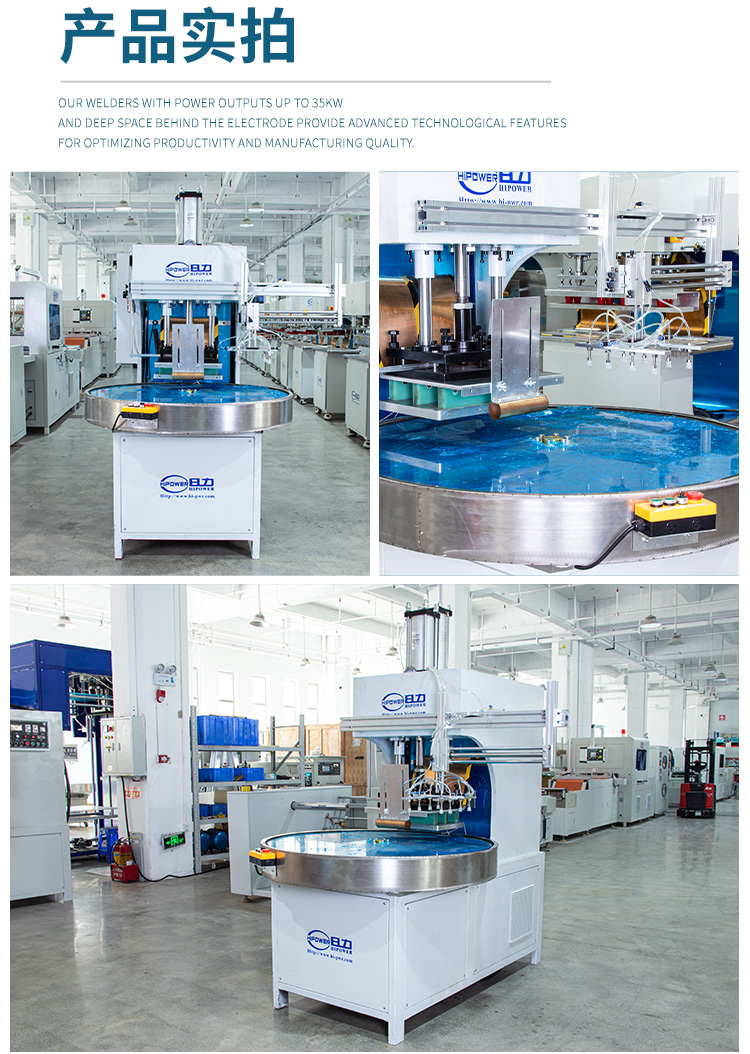 ★高周波熔接機(jī),通常也稱為高周波吸塑包裝機(jī)、高周波塑料熔接機(jī)、高頻熱合機(jī)、高頻封口機(jī)、吸塑包裝機(jī)、高周波封口包裝機(jī)、熱合封口包裝、泡殼包裝機(jī)、高頻熱合包裝機(jī)、吸塑包裝機(jī)、高周波封口機(jī)、高頻包裝機(jī)、高周波包裝機(jī)、包裝機(jī)械等等。單頭推盤式高周波熔接機(jī)和單頭轉(zhuǎn)盤式高周波熔接機(jī)有手動和自動兩種可供選擇,自動推盤式或自動轉(zhuǎn)盤式的高周波機(jī)效率更高,產(chǎn)量更好。連續(xù)送料熔接,定位。也適用用大面積產(chǎn)品的加工,熔接,如PVC水床,漂流筏,兒童泳池等。